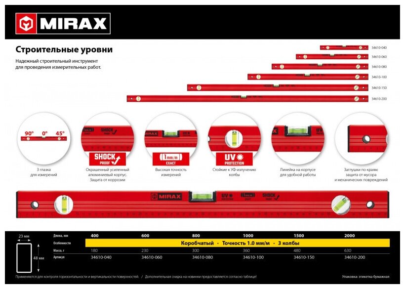 MIRAX 1000 мм, с линейкой, уровень (34610-100) 550 ₽ Подробнее