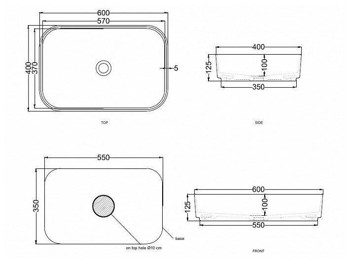 Лучшие цены. SHUI Раковина накладная прямоугольная 60х40х12,5 без отверстий для смесителя,цвет белый глянец. Магазины в вашем городе.