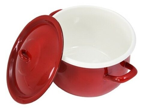 Лучшие цены. Кастрюля изготовлена из высококачественной стали, покрытой жаропрочной эмалью. Такое покрытие защищает сталь от коррозии, придает посуде гладкую стекловидную поверхность и надежно защищает от кислот и щелочей. Яркий красный цвет внешнего покрытия кастрюли привлекает внимание и гармонирует с молочным цветом эмали внутри. Благодаря тому, что ручки кастрюли и ее крышка также выполнены из стали с эмалевым покрытием, ее можно ставить в духовой шкаф вместе с крышкой. Магазины в вашем городе.