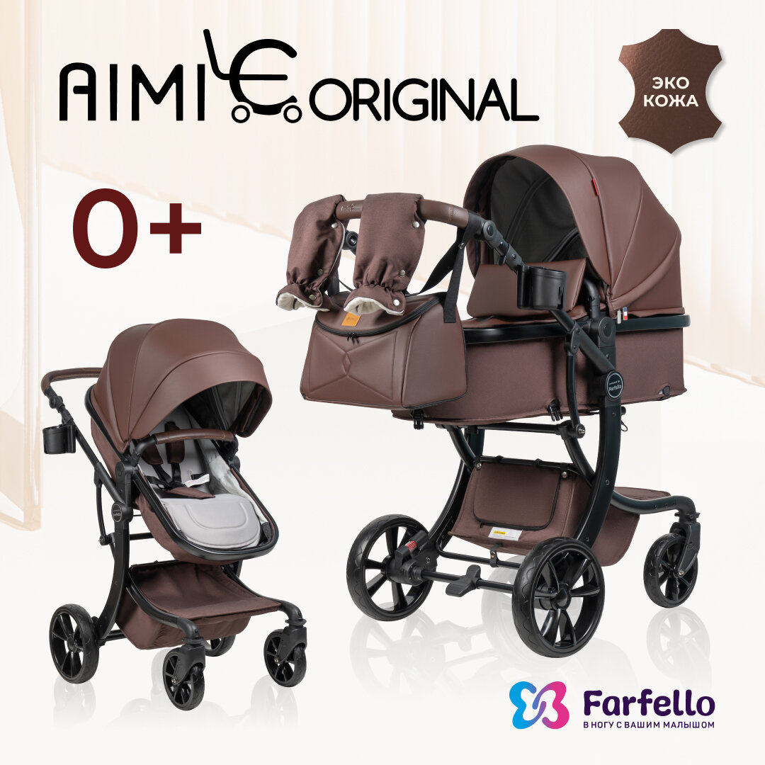 Детская коляска трансформер 2 в 1 Aimile Original Autumn / для новорожденных / Шоколадный
