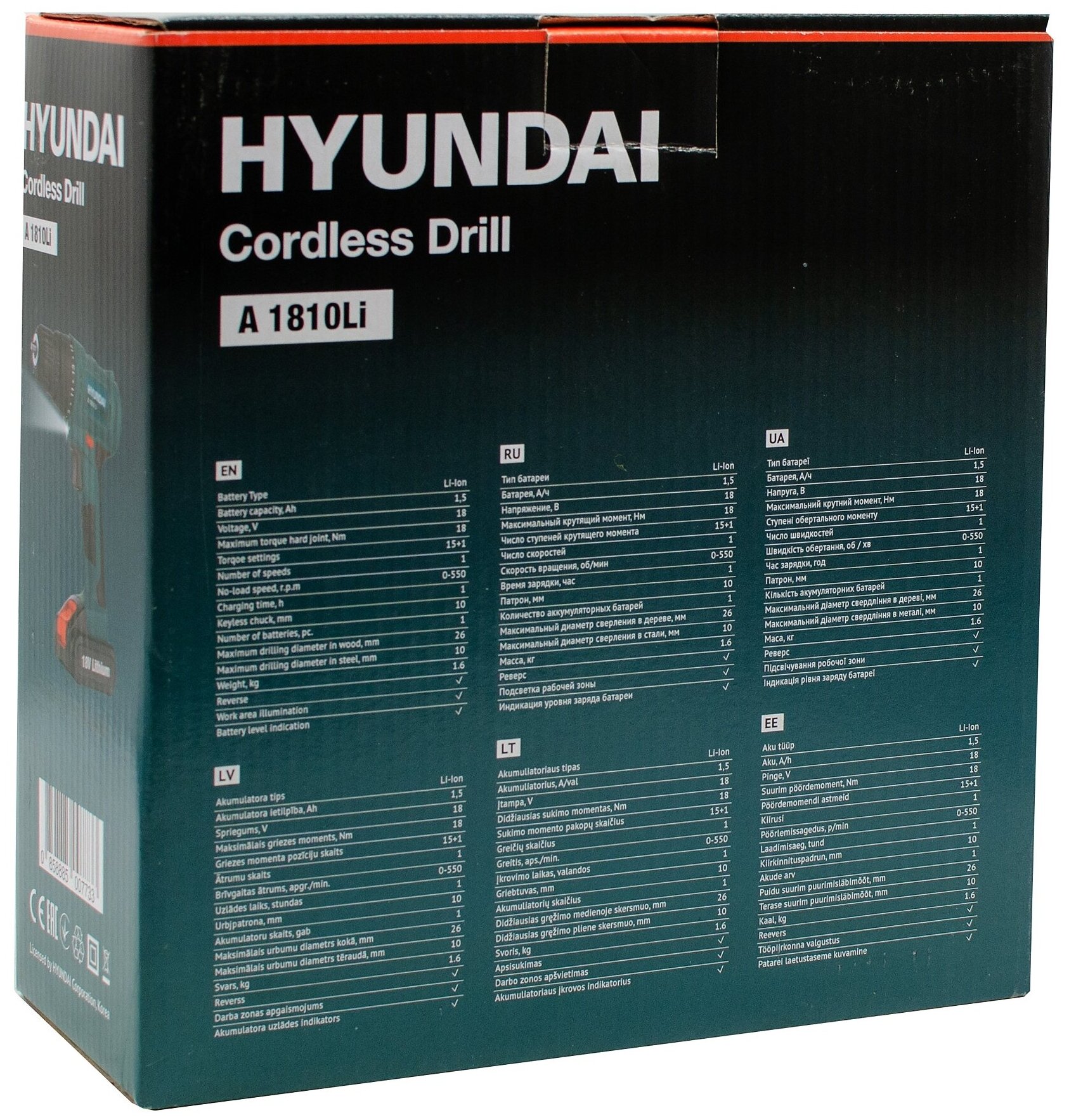 Дрель/шуруповерт Дрель аккумуляторная Hyundai A 1810Li, 18V, 1аккумулятор