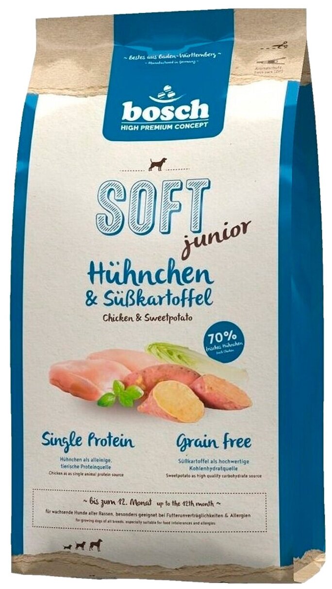 Лучшие цены. Bosch полувлажный корм для щенков с курицей и бататом soft junior 5772101, 1,000 кг. Магазины в вашем городе.