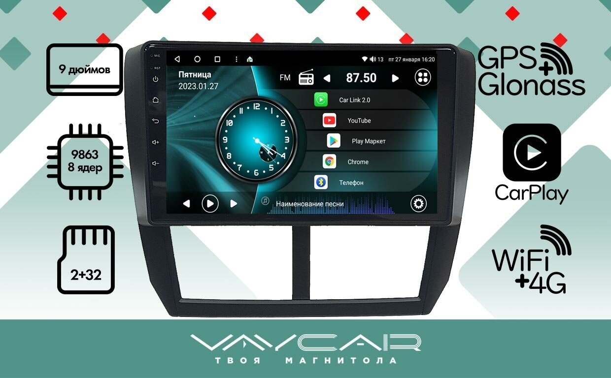 Автомагнитола Магнитола Vaycar 09V2 для SUBARU Impreza, Forester 2008-2012 (Андроид, 2+32, 8 ядер, WiFi, BT, 4G, GPS, QLED 9")
