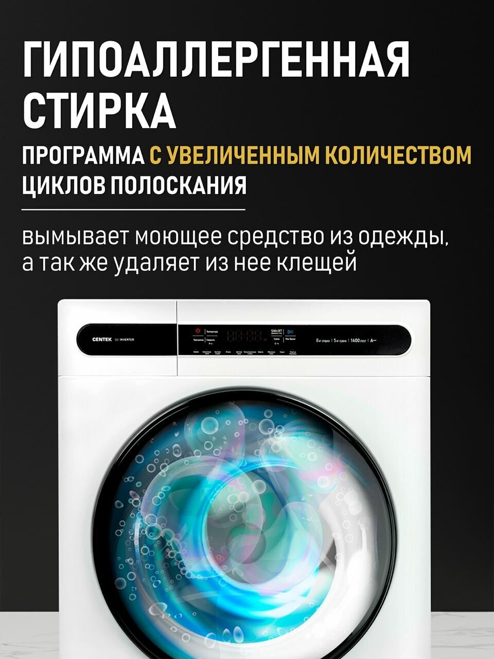 Стиральная машина CENTEK CT-1951 белая , 8кг, 11пр, INVERTER, Сушка 5кг
