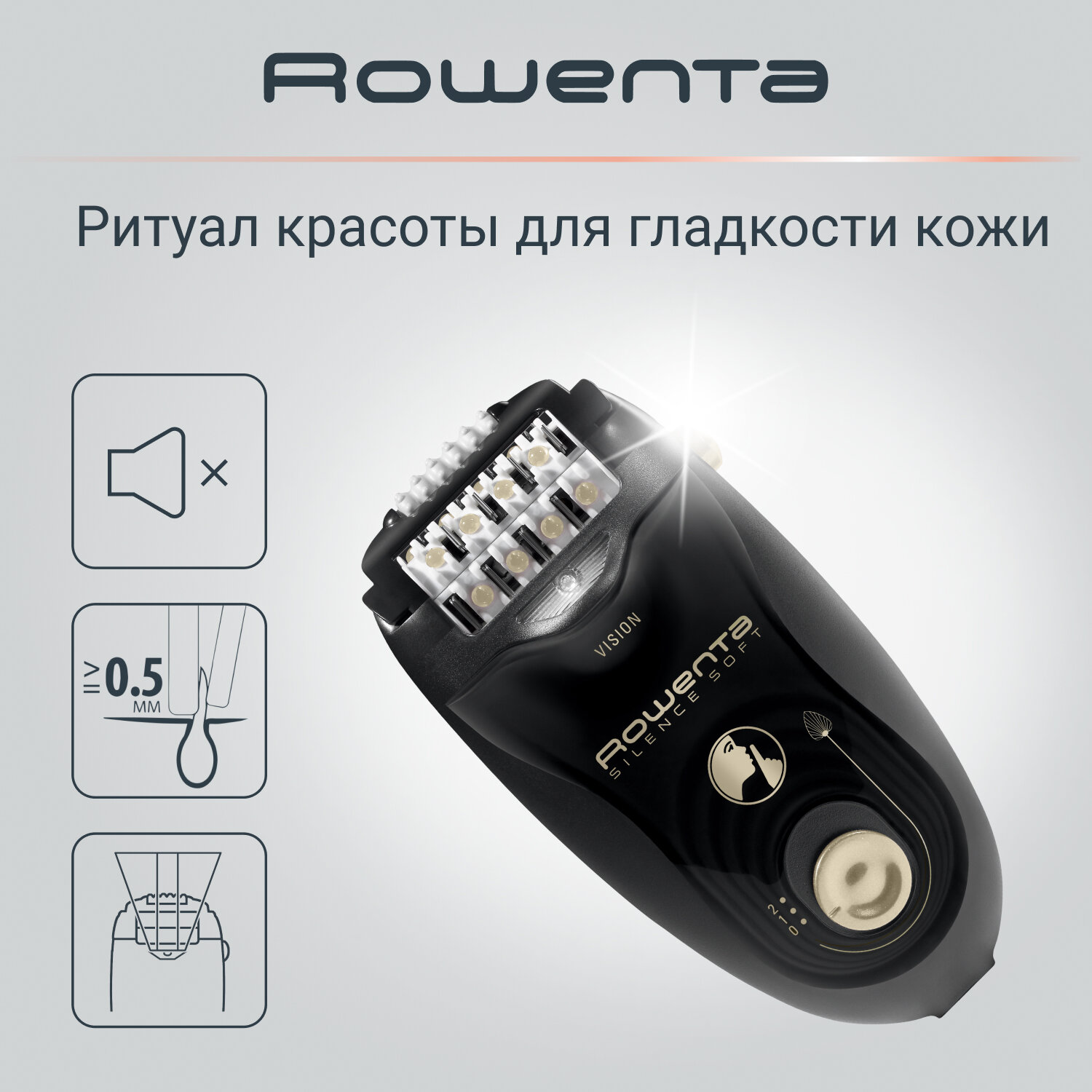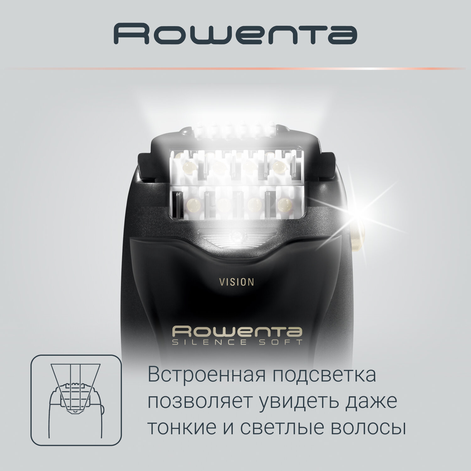 Эпиляторы Эпилятор женский Rowenta Silence Soft Magic Nature EP5628F0, черный, 2 скорости, встроенная подсветка, съемная моющаяся головка