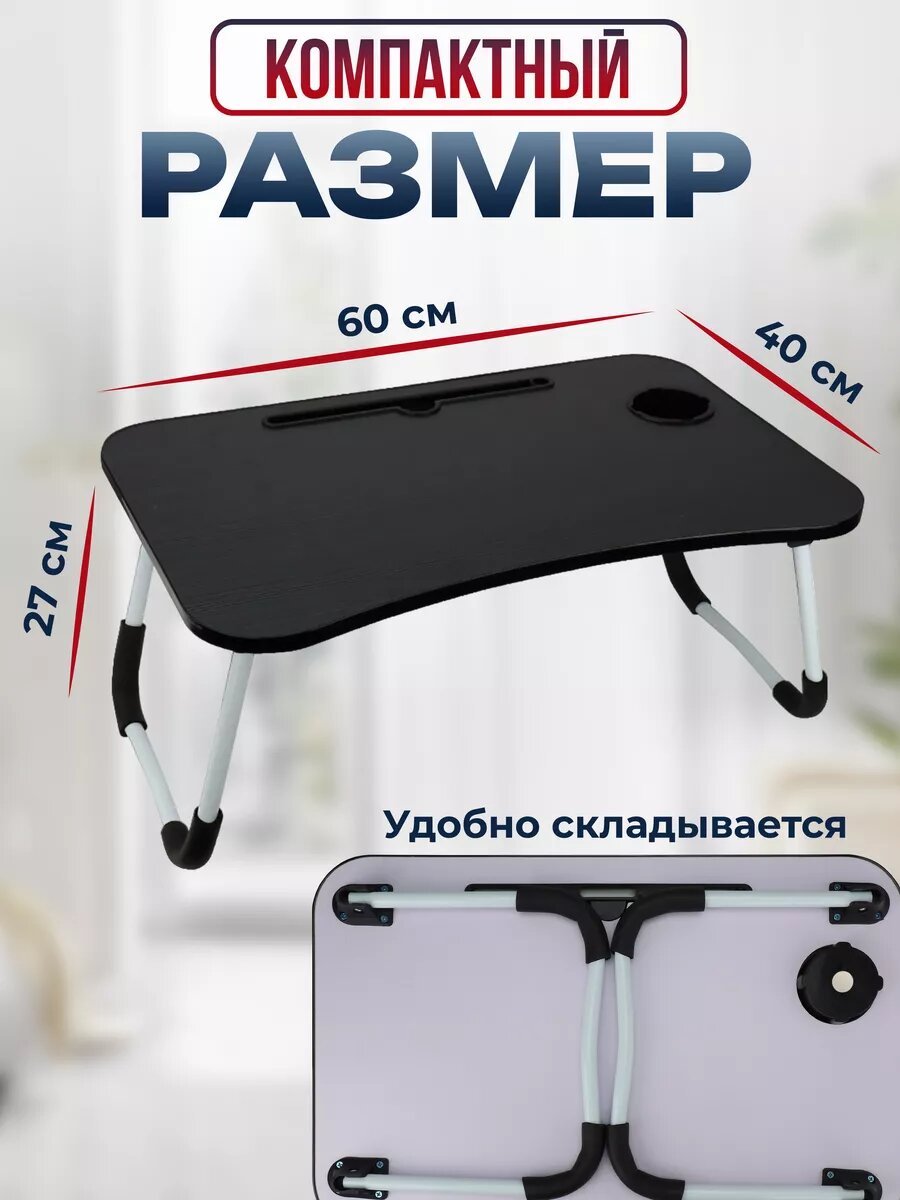 Стол для ноутбука с подстаканником и держателем под планшет или телефон. Стол черный