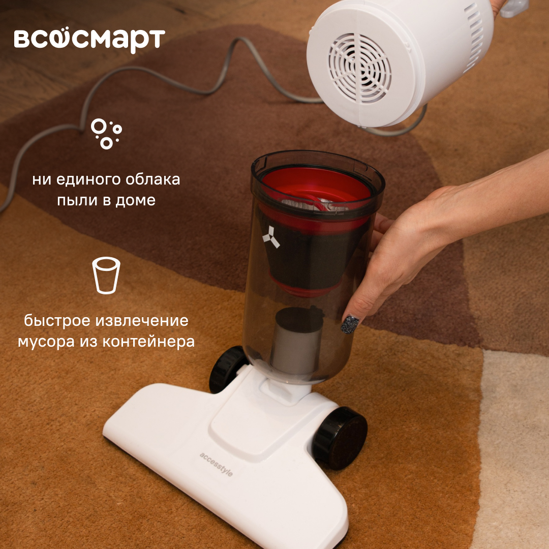 Пылесосы Пылесос вертикальный проводной Accesstyle VH600N01DW, белый