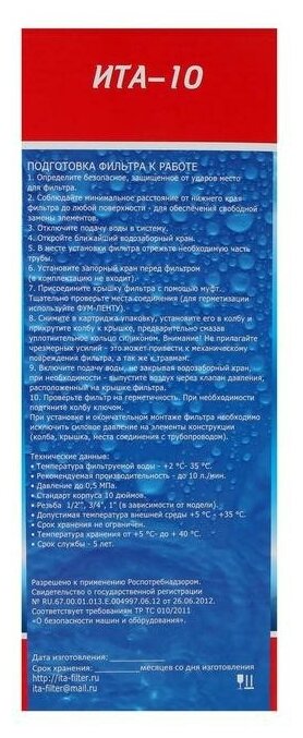 Фильтр для воды ITA Filter ITA-10-3/4 929 ₽ Подробнее