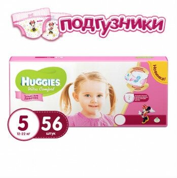 Huggies подгузники Ultra Comfort для девочек 5 (12-22 кг), 56 шт.