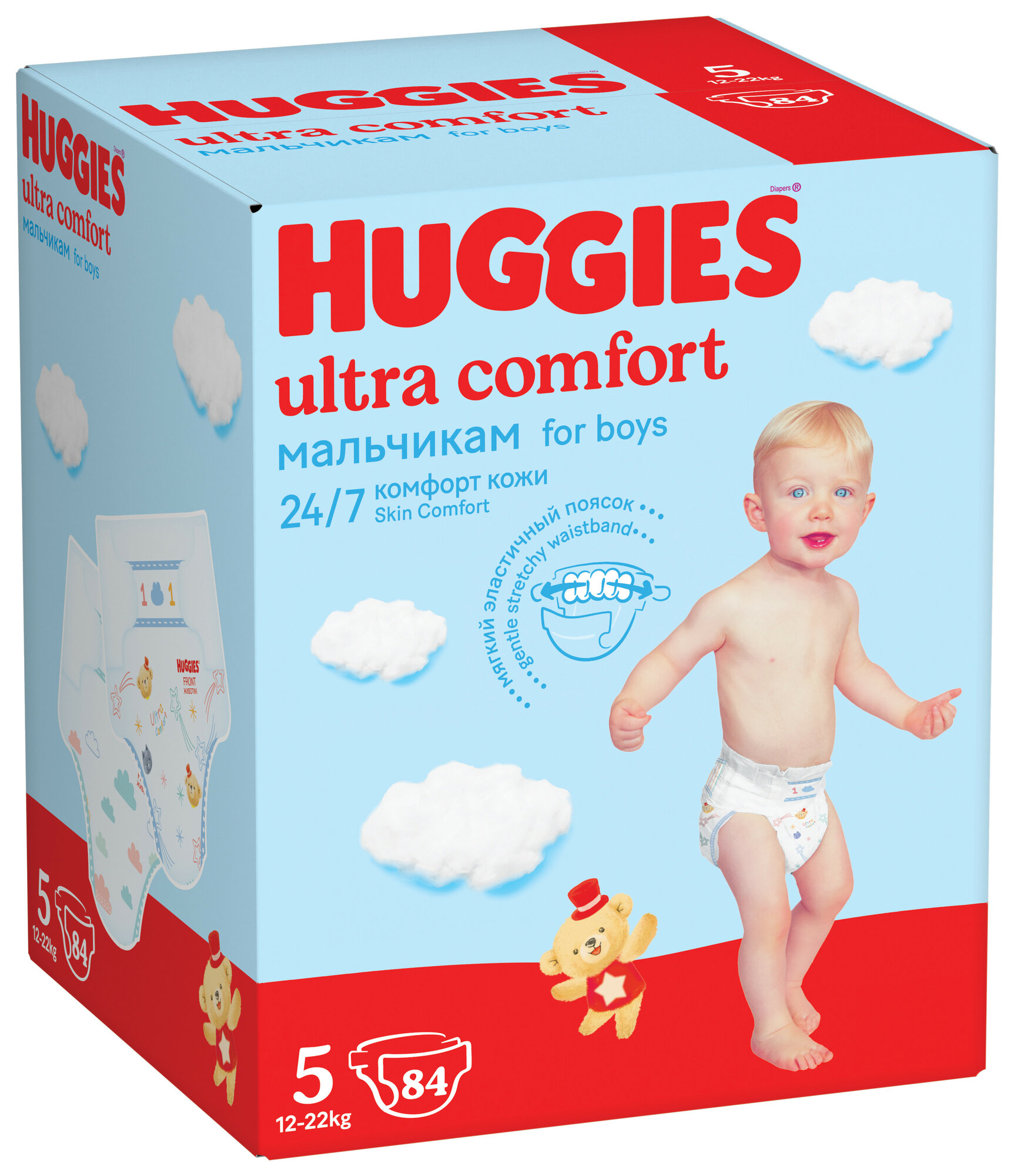 Подгузники Huggies Ultra Comfort для мальчиков 5 (12-22кг), 84 шт.