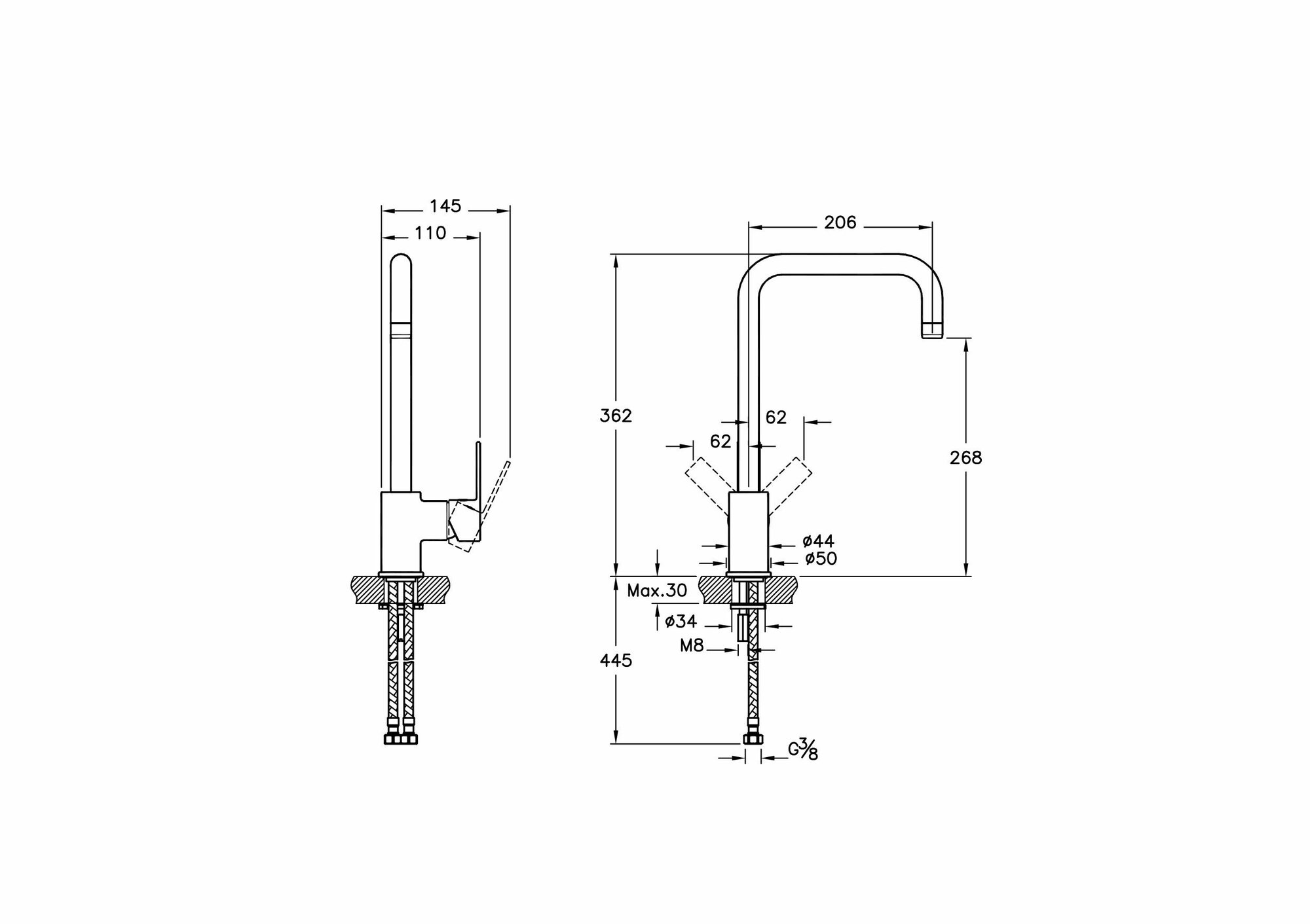 | Подвод воды | шланги / 445 мм / G 3/8" |