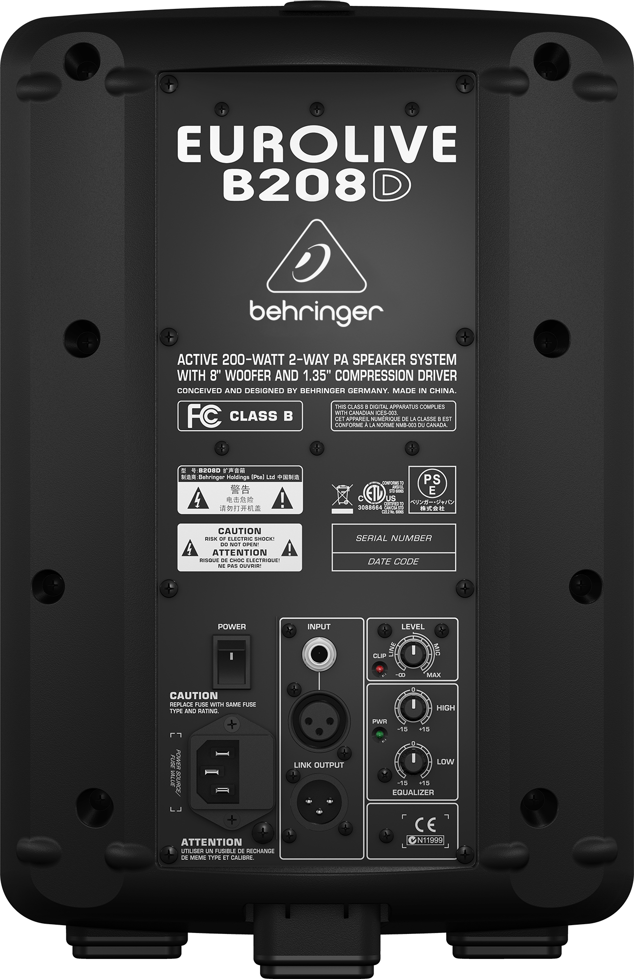 Лучшие цены. BEHRINGER B208D - активная двухполосная (8’’ + 1,35’’) акустическая система с пиковой мощностью 200 Вт и программной мощностью 175 Вт для живого звука и воспроизведения с аудио-носителей. Эту систему отличает легкая и очень компактная конструкция, а также отменное качество звука, остающееся безупречным даже на максимальном уровне звукового давления. Для своих чрезвычайно компактных размеров аппарат выдает достаточную мощность, прекрасный прозрачный звук и хорошее давление. Магазины в вашем городе.