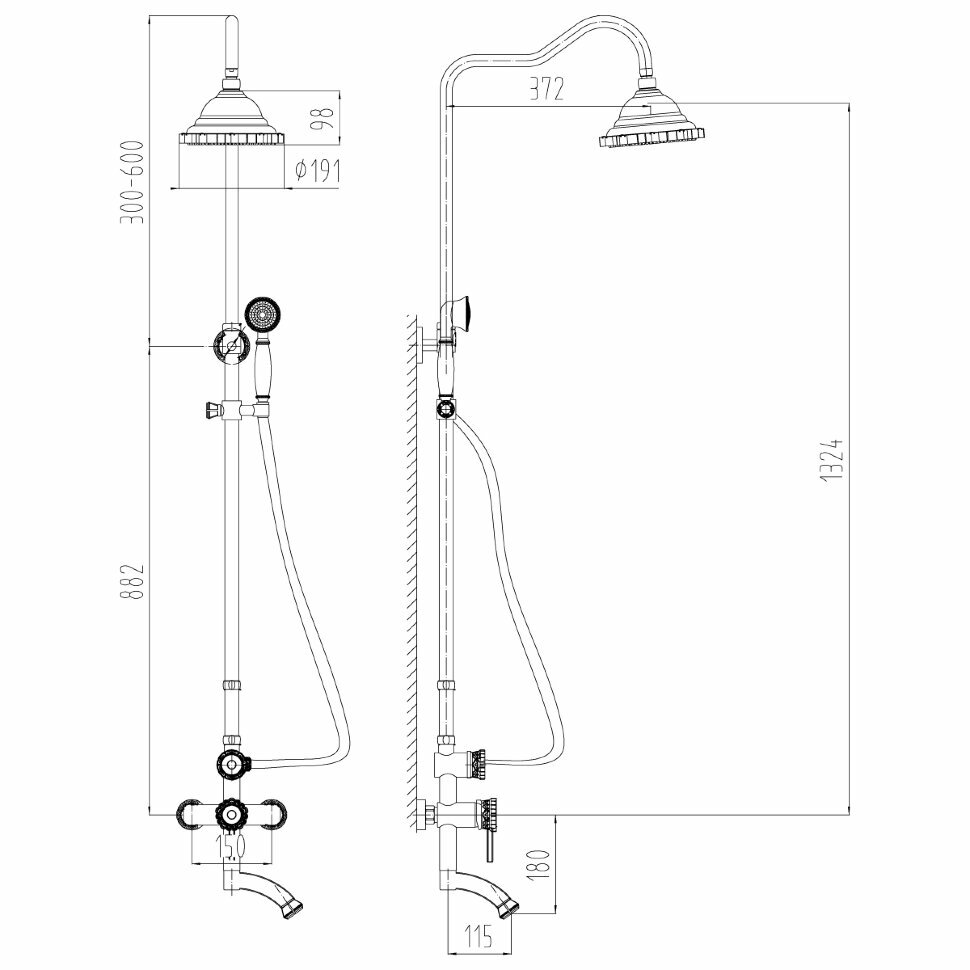 | Комплектация | ручной душ / верхний душ / смеситель / стойка / штанга / душевой шланг / крепление ручного душа |