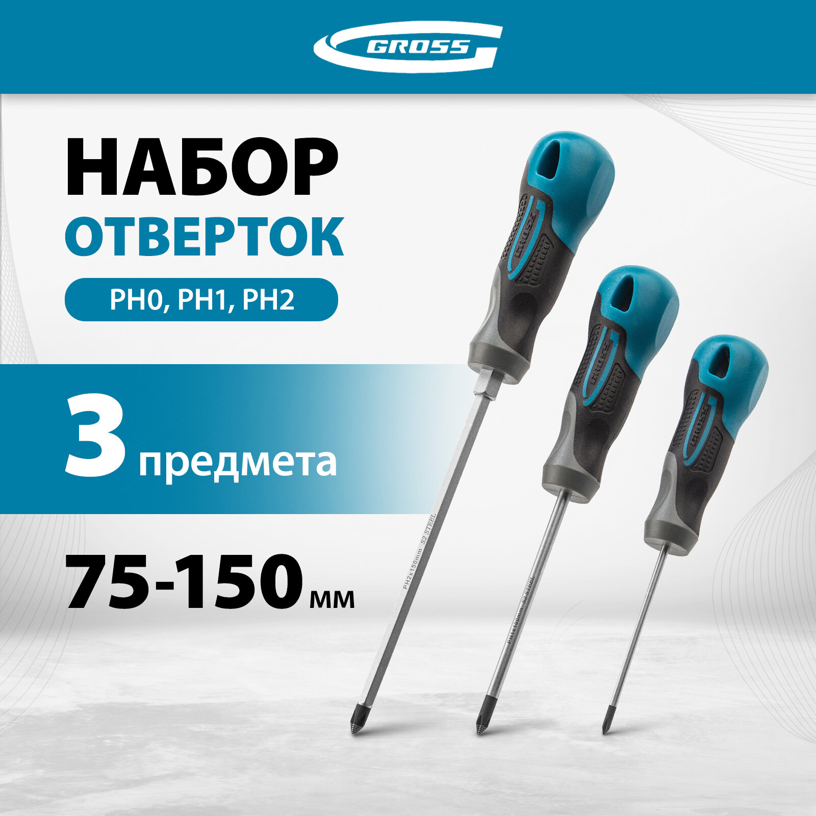 Набор инструментов Набор отверток Gross , PH 3 шт, S2, трехкомпонентная рукоятка, 12166