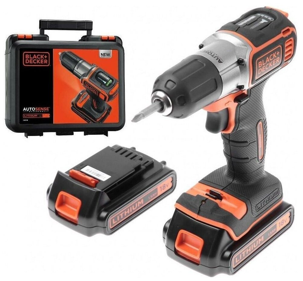 Аккумуляторная дрель-шуруповерт BLACK+DECKER ASD18KB, 18.0 В, 2 Li-Ion аккумулятора 1.5 Ач, зарядное устройство