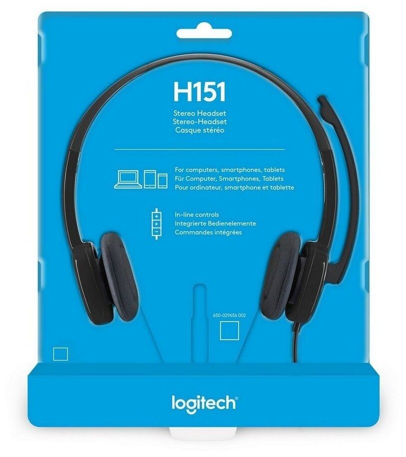 Гарнитура Logitech H151, для компьютера/мобильных устройств, накладные, черный [981-000589]
