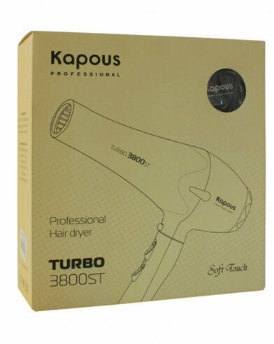 Лучшие цены. Профессиональный фен, цвет черный. Модель Turbo 3800ST от Kapous - профессиональный фен для волос с повышенной мощностью. За счет удлиненного корпуса, мощности и распределению воздушного потока, сокращается время сушки (укладки) до 30%. Благодаря покрытию Soft Touch, эргономичной ручке фен приятно и удобно держать в руке. Переднее расположение кнопок для регулировки позволяет работать как левой, так и правой рукой. Вес, мощность и малошумность фена обеспечивает комфортное выполнение укладок волос. Магазины в вашем городе.