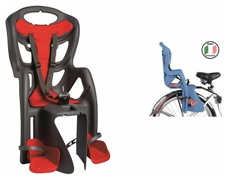 Детские велокресла BELLELLI Сидение заднее Pepe Standard, на велосипед 29", тёмно-серое с красной вставкой до 22кг