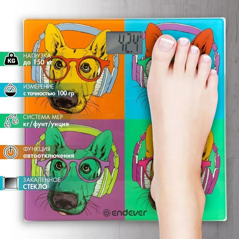Весы напольные электронные Endever Aurora-566 / рисунок Собака в Очках / закаленное стекло / до 150 кг 809 ₽ Подробнее