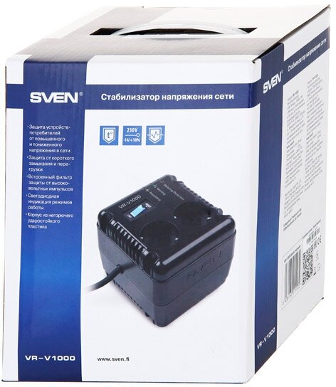 Лучшие цены. Стабилизатор напряжения VR-V1000 – это модель начального уровня из линейки стабилизаторов (AVR) SVEN, которые обеспечивают защиту любой электронной техники от повышенного или пониженного напряжения, импульсных помех и опасного высокого напряжения. Номинальная мощность стабилизаторов составляет 500 Вт. Стабилизаторы напряжения предназначены для эксплуатации электроприборов в регионах с нестабильным напряжением. Магазины в вашем городе.