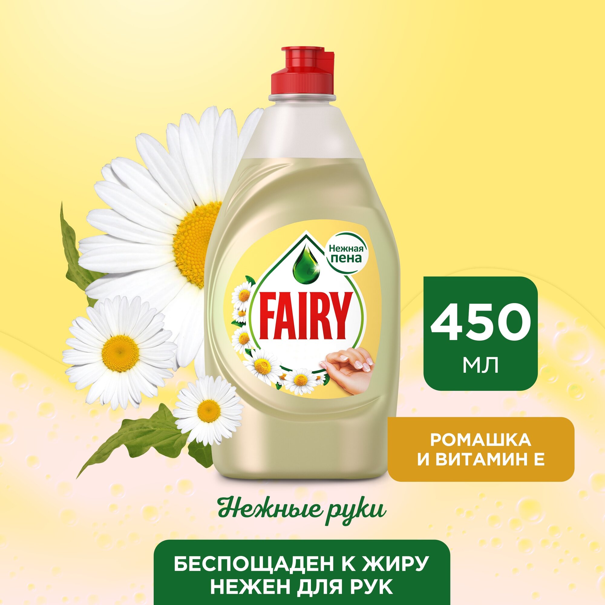 Fairy Средство для мытья посуды Фэйри Нежные руки Ромашка и Витамин E, 450 мл