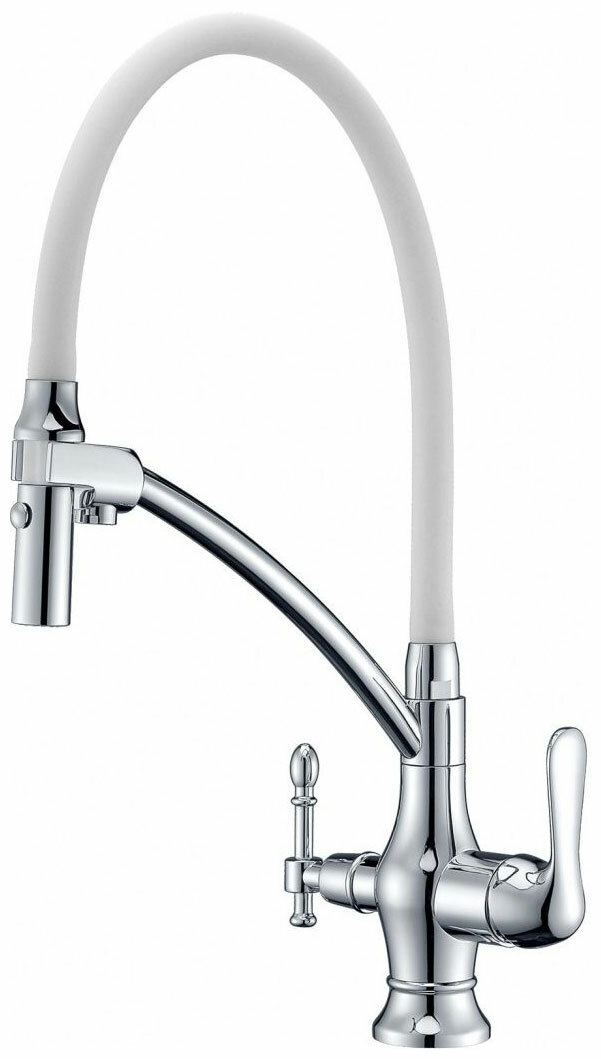 Смеситель для кухни под фильтр ZorG ZR 347-8 YF, хром полированный, гибкий белый излив, струя-душ, 2в1