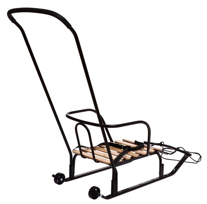 Лучшие цены. Описание Санки идеально подходят для перевозки ребенка в зимнее время года. Широкие полозья обеспечивают устойчивость санок и легкое скольжение по снегу. На конце полозьев установлены транспортировочные колеса, что позволяет, слегка приподняв переднюю часть, перевести санки по асфальту, а при заходе в помещение их не нужно нести в руках - сани можно просто катить. Санки оснащены спинкой с подлокотниками, которые позволяют ребенку крепко держаться, а ремень безопасности не позволит малышу выпасть. Магазины в вашем городе.