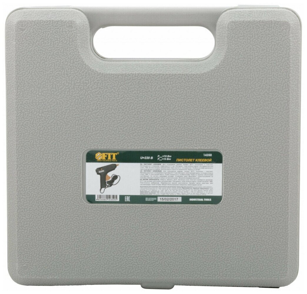 Пистолет клеевой д.11 мм, 15 Вт (70 Вт), в кейсе | код 14350 | FIT (1 шт.)