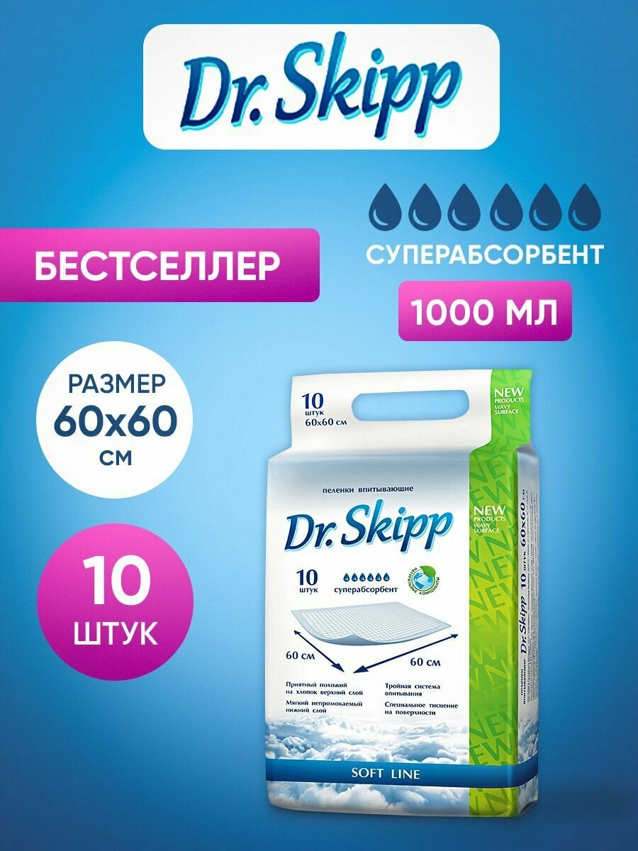 Подгузники Пеленки гигиенические супервпитывающие Dr.Skipp 60x60 см, 10 шт