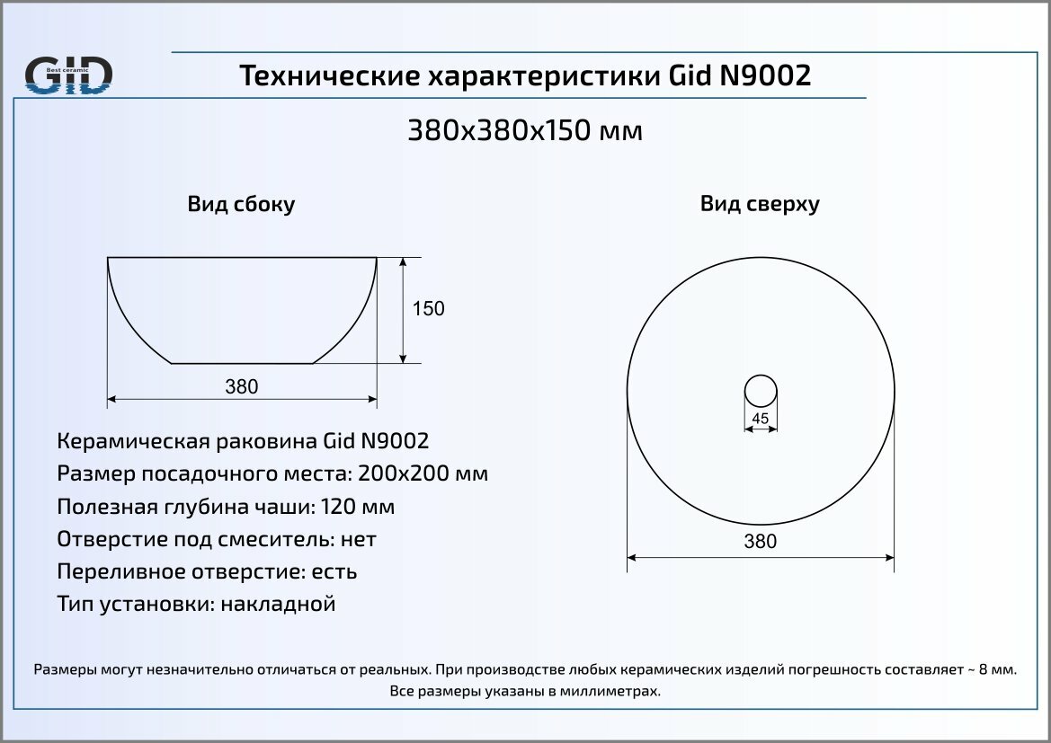 Раковина GID 9002