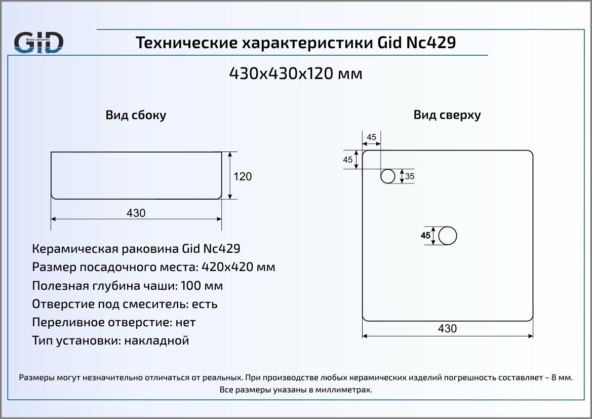 Раковина накладная (43х43) Gid Nc429 6 608 ₽ Подробнее