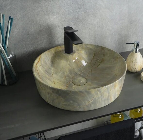Лучшие цены. Форма: круглая, Ширина, см: 45, Глубина, см: 45, Высота, см: 14, Цвет: бежевый, серый, Поверхность: глянцевая, Расположение смесителя: посередине, Отверстия под смеситель: на 1 отверстие, Стилистика дизайна: современный стиль, Материал: фаянс, Перелив: нет, Крепление: к тумбе, к столешнице, Донный клапан: в комплекте. Магазины в вашем городе.