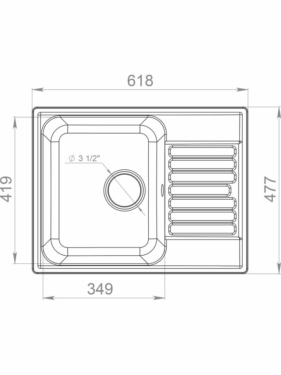 Врезная кухонная мойка 61.8 см, GranFest Quarz GF-Z13, серый
