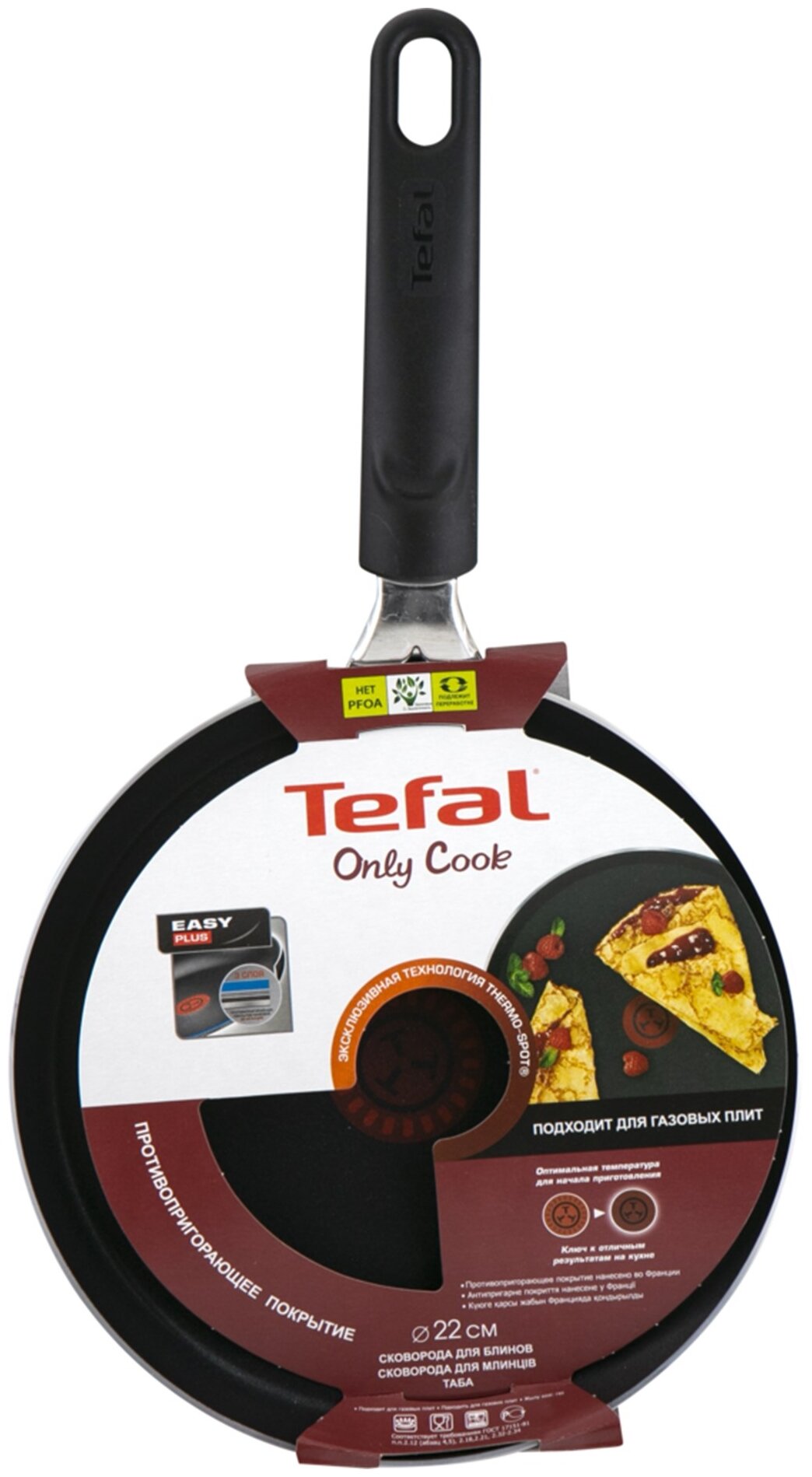 Лучшие цены. Сковорода блинная Tefal Only Cook 04170522 круглая 22см ручка несъемная (без крышки) коричневый (910. Магазины в вашем городе.