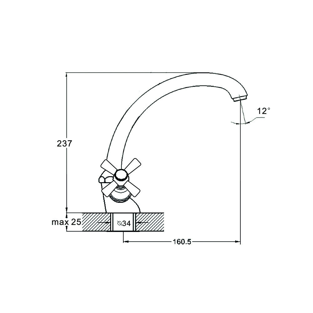 смеситель G.Lauf для кух. мойки с пов. изливом, кер. (1/2) 180°, шпилька QMT4-B722