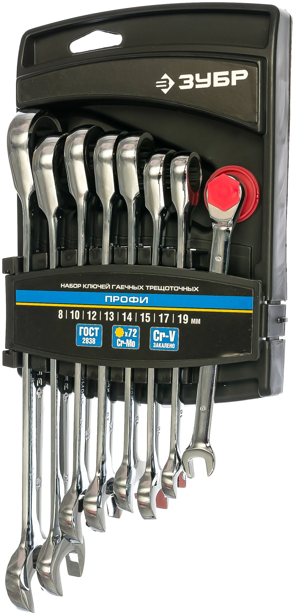 Набор комбинированных гаечных ключей трещоточных 8 шт, 8 - 19 мм, ЗУБР