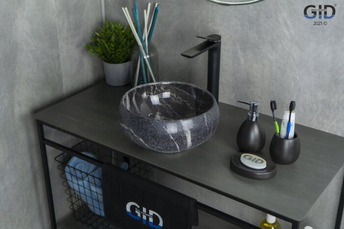 Керамическая раковина Gid Mnc480 с черным донным клапаном