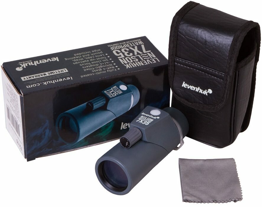 Лучшие цены. Купить морской монокуляр с компасом и дальномером Levenhuk Nelson 7x35 будет полезно любителям отдыха на воде, рыболовам и туристам. Небольшие габариты и вес позволяют повсюду носить его с собой. Встроенный компас и дальномер существенно облегчат ориентирование на местности и выбор оптимального маршрута любителям активного отдыха. Конструктивные особенности морского монокуляра Levenhuk Nelson 7x35 Пластиковый корпус монокуляра имеет максимальную степень защиты от влаги IPх7, а тиснение на его поверхности. Магазины в вашем городе.