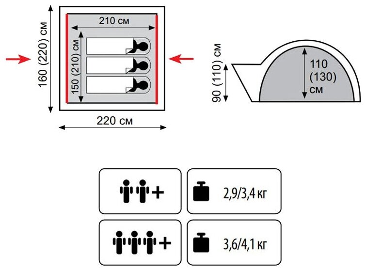 | Водонепроницаемость тента | 2000 мм вод. ст |