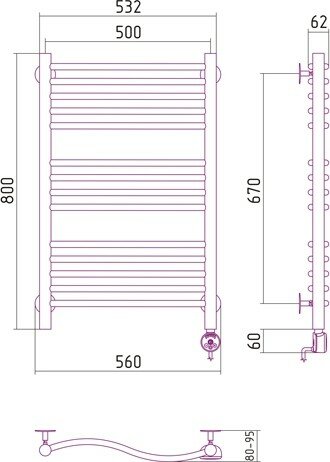 Полотенцесушитель Полотенцесушитель водяной Флюид+ 800х500 Сунержа (00-0222-8050)
