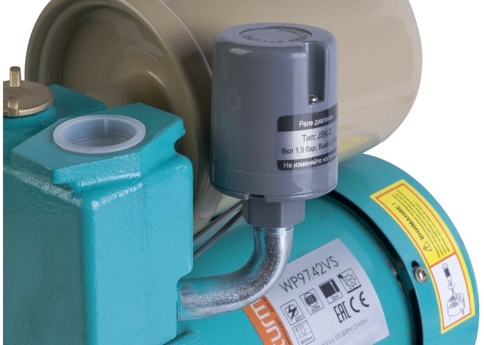 Лучшие цены. Насосная мини станция Sturm! WP9742VS служит для создания давления в водопроводной сети загородных домов, дач, в автоматическом режиме поддерживает давление в заданном диапазоне, независимо от источника воды: водопровода, колодца, скважины. Насосная станция работает с высоким КПД и низким энергопотреблением, обладает высокой производительностью и способна поднимать воду на высоту до 32 м. Магазины в вашем городе.