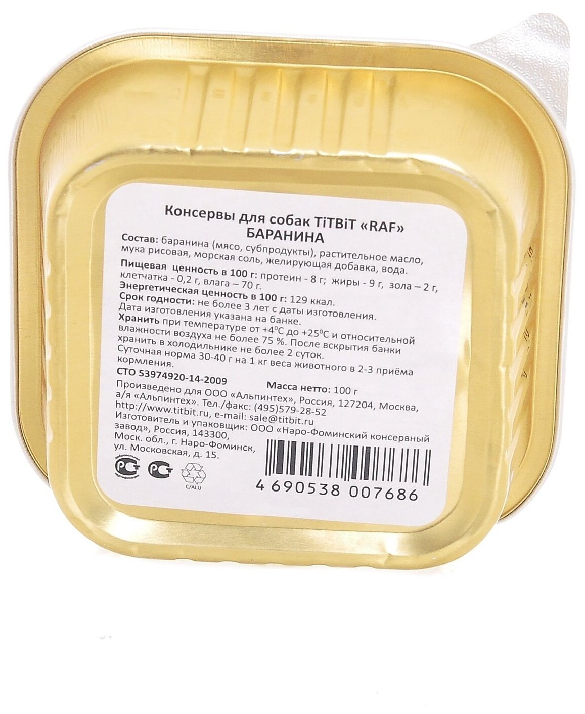 Корм для собак Корм для собак Titbit RAF Баранина, 100 г
