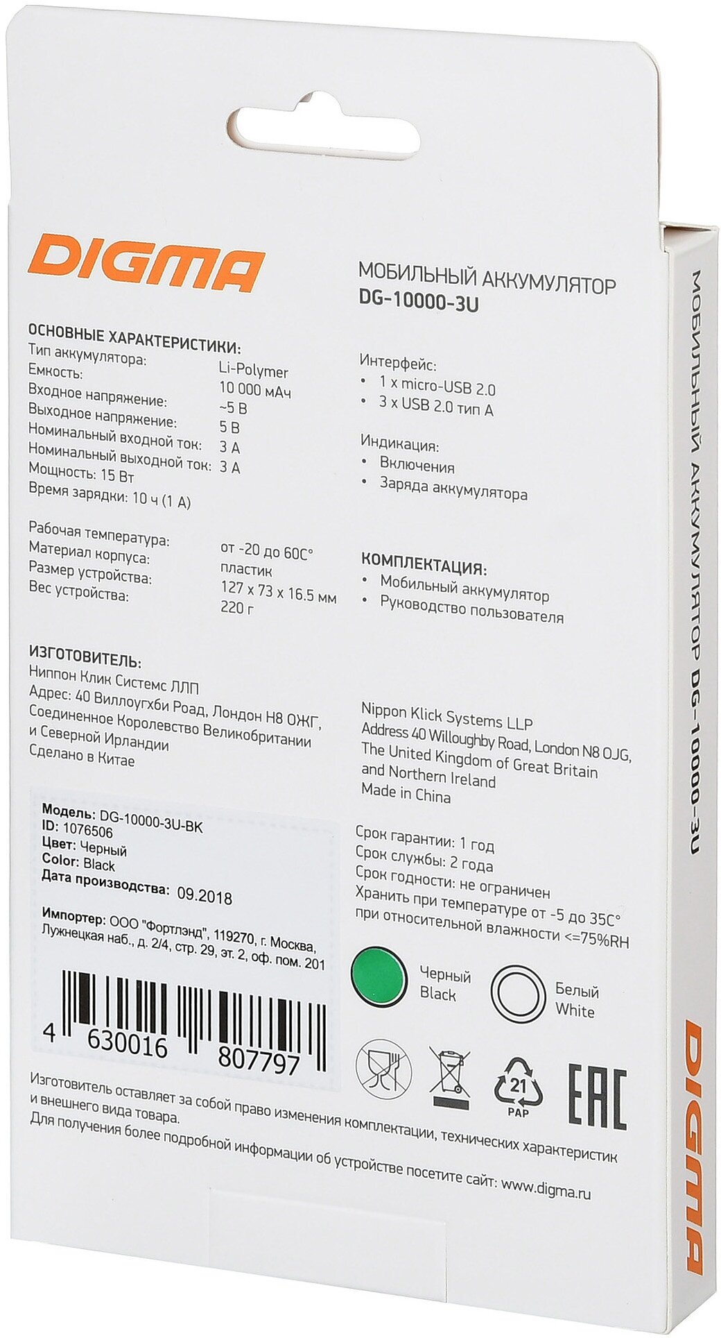 Мобильный аккумулятор Digma Dg-10000-3u-bk .