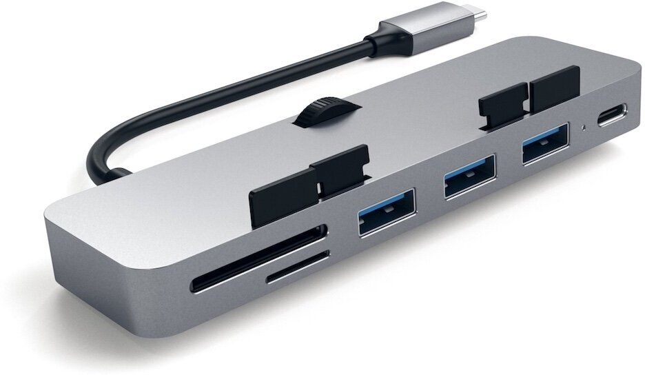 USB-концентратор Satechi Aluminum Type-C Clamp Hub Pro для new 2017 iMac и iMac Pro. Интерфейс USB-C. 3 разъема USB 3.0, 1 разъем USB-C, слоты для карты памяти SD, Micro SD. Цвет серый космос.