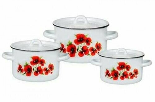 Набор кастрюль стальэмаль №144 Восточный мак белосн.