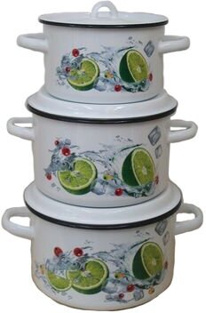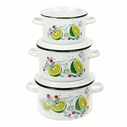 Кастрюли Набор эмалированных кастрюль 33 мохито белоснежный (1,5+2,9+4,5л), Череповец.
