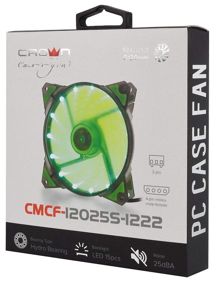 Вентилятор CROWN 120*120*25 1500об/мин 20дБ 16LED 3pin+MOLEX CMCF-12025S-1222, зелёный