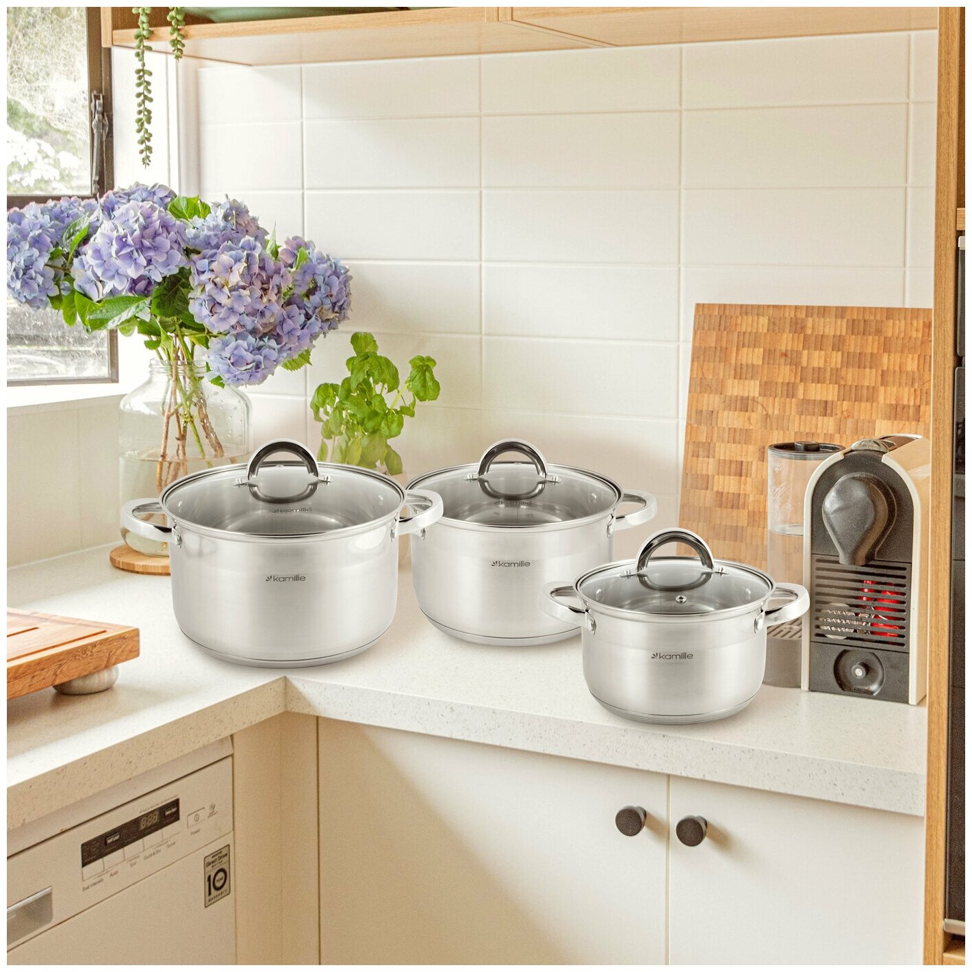 Набор кастрюль Kamille из нержавеющей стали 6 предметов (4.0л, 5.5л, 7.0л)