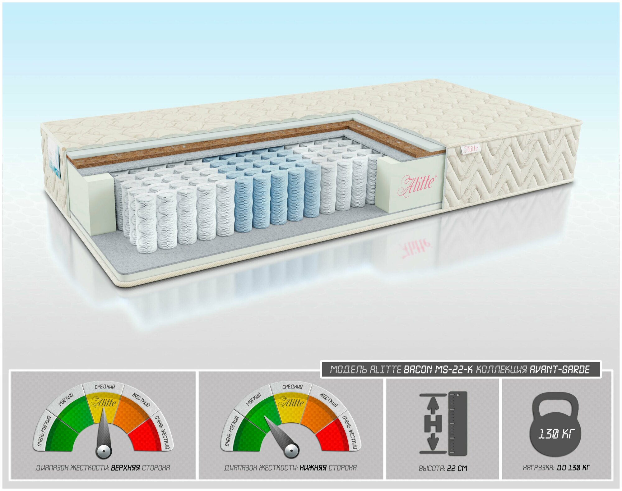 Матрас Alitte Bacon MS-22-K, Размер 140х186 23 365 ₽ Подробнее