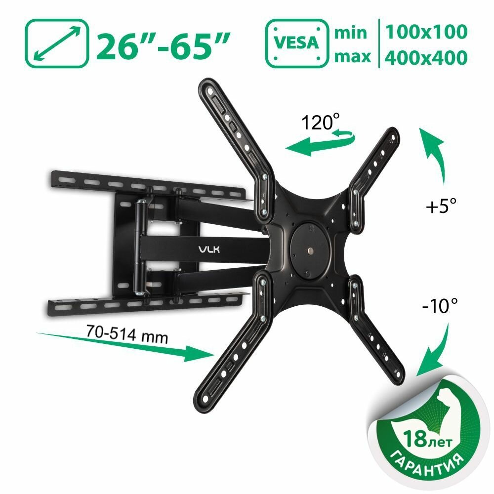 Кронштейн для телевизора настенный наклонно-поворотный VLK TRENTO-8 / до 65 дюймов / vesa 400x400 3 433 ₽ Подробнее